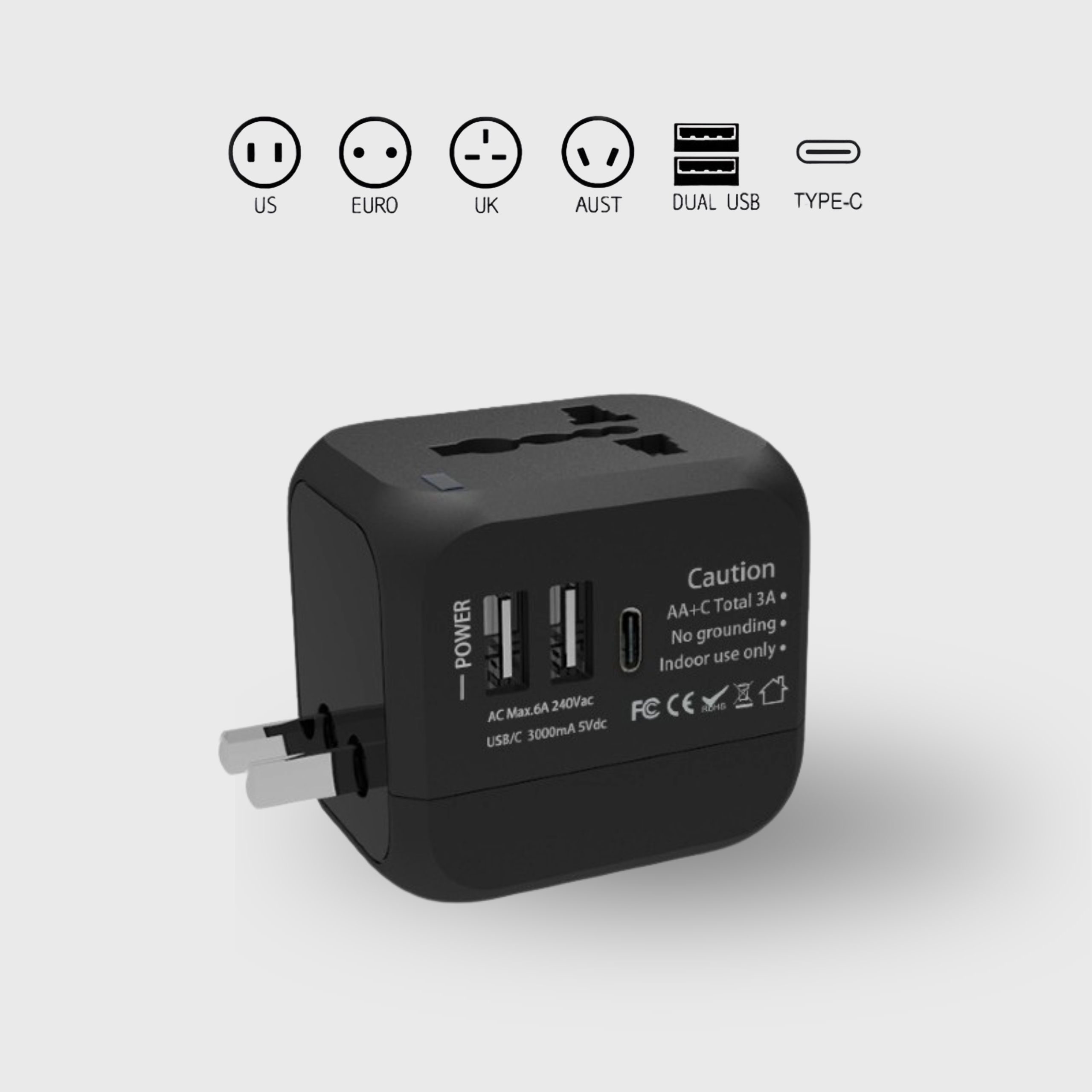 - Universal compatibility with US, UK, EU & AUS outlets