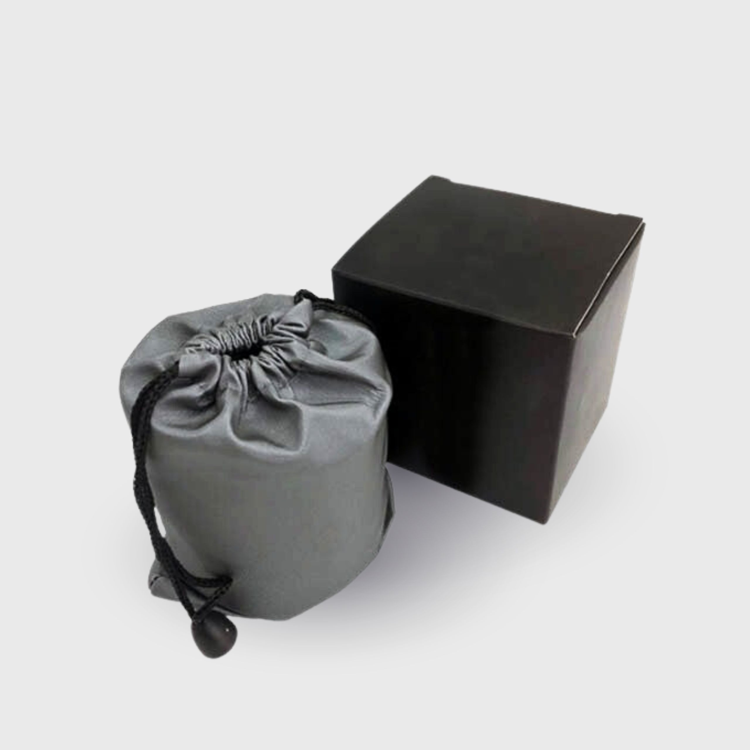 - Premium packaging: grey drawstring pouch + elegant black folding box
